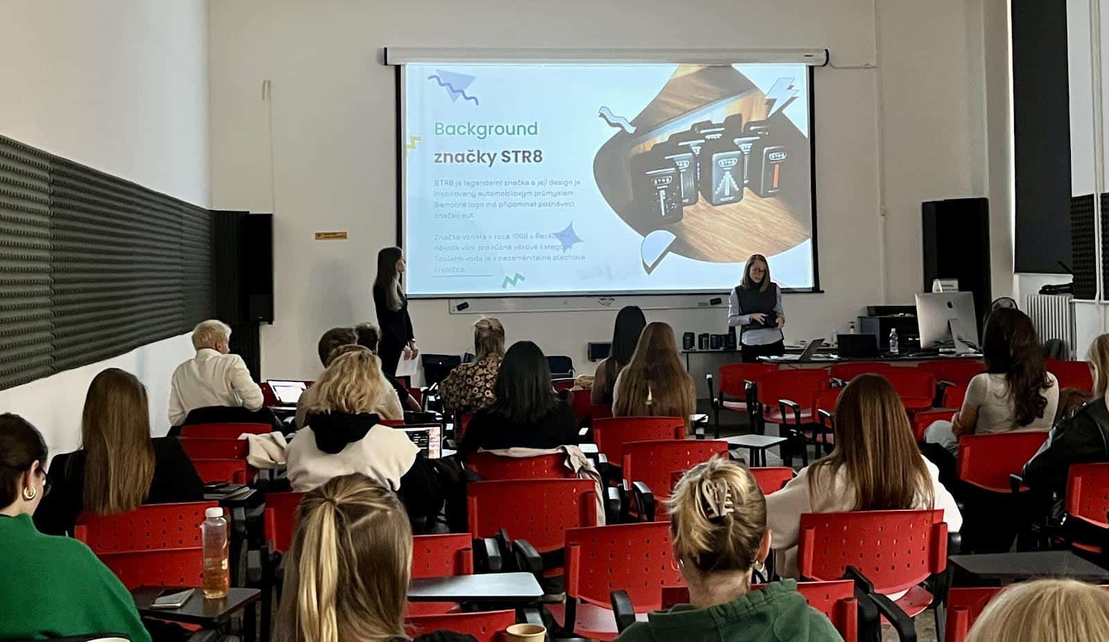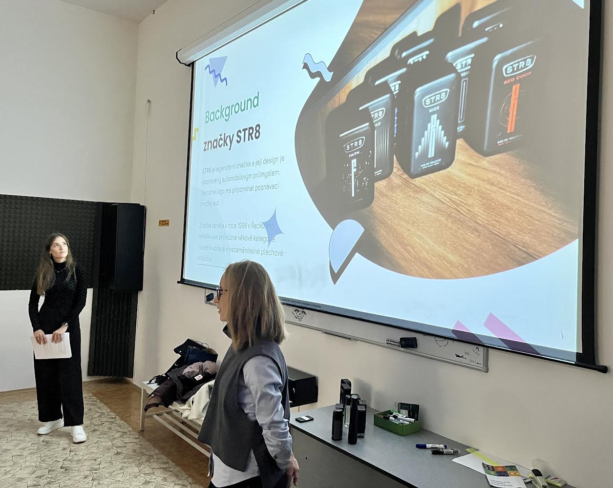 V polovině října navštívily v rámci předmětu Tvorba mediální strategie studenty marketingu VŠKK Jana Voborská, Brand Manager společnosti Sarantis Group a Anna Svobodová, Media Planner z mediální agentury OMD. Představily studentům zadání na návrh mediální strategie pro značku pánské kosmetiky STR8 v rámci letošního ročníku studentské soutěže CREATIVE CHALLENGE a zodpověděly dotazy týkající se produktu a cílové skupiny.