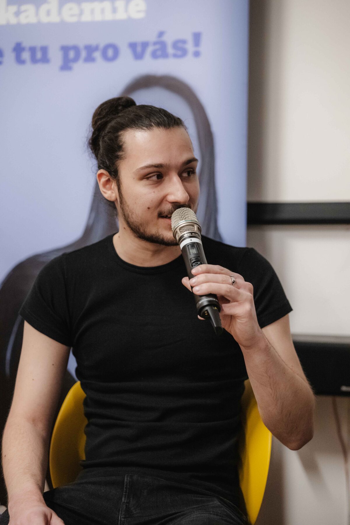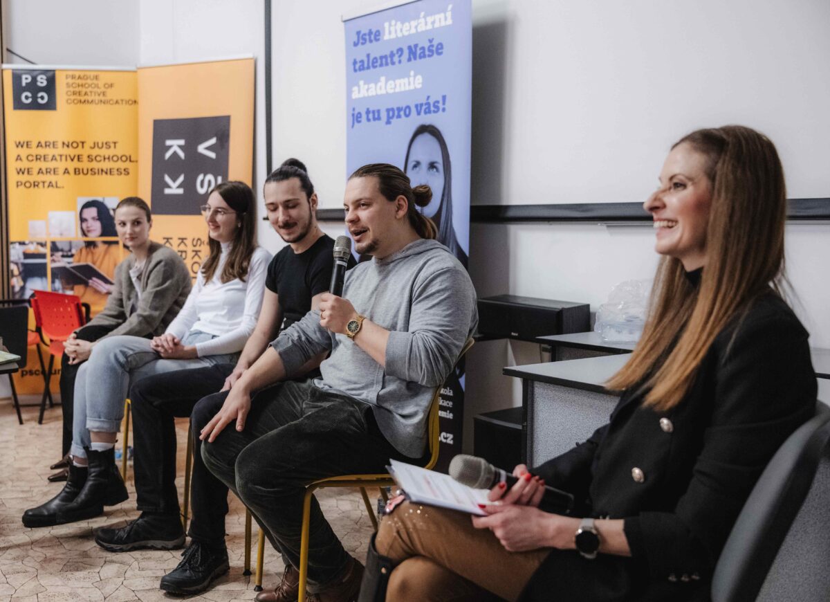 V dalším bloku vystoupili studující a absolventi a absolventky Literární akademie, kteří již pronikli na knižní trh a publikovali svá díla. Byl to Miroslav Rákos, současný student třetího ročníku, a absolventky a absolventi Bohumil Kuzebauch, Sára Vůchová a Anna Řezníčková. Pohovořili o tom, jak vydali své prvotiny, jaké zážitky ze studia literární tvorby mají a následně přečetli ukázky ze své tvorby.