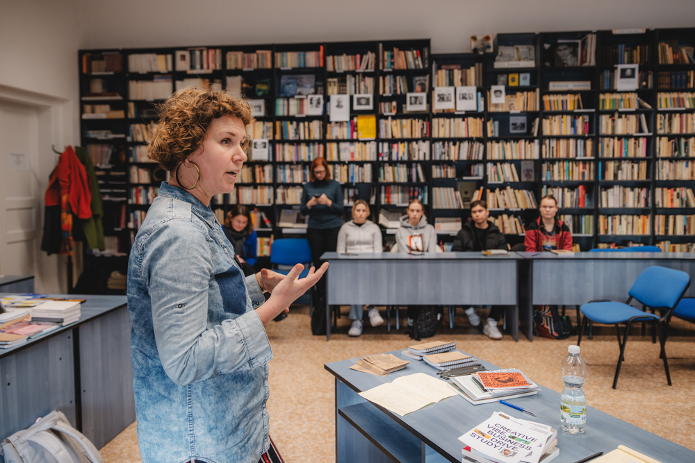 Studující Literární akademie a PSCC se 5. 12. zúčastnili besedy s Kim van Kaam z nizozemského institutu Wintertuin, který propojuje spisovatele a spisovatelky napříč Evropou, a Michalou Čičvákovou z Českého literárního centra. Dozvěděli se tak o možnostech, jak jako autorské osobnosti proniknout i na zahraniční knižní trh a jaké mezinárodní možnosti spolupráce jsou jim otevřeny.
