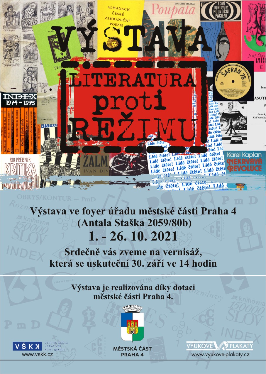 Vysoká škola kreativní komunikace si Vás dovoluje pozvat na výstavu Literatura proti režimu, která se uskuteční 1. – 26. 10. 2021 ve foyer úřadu Městské části Praha 4. Autorem výstavy, je ředitel Literární akademie a vedoucí katedry Literární tvorby VŠKK Mgr. Václav Krištof.