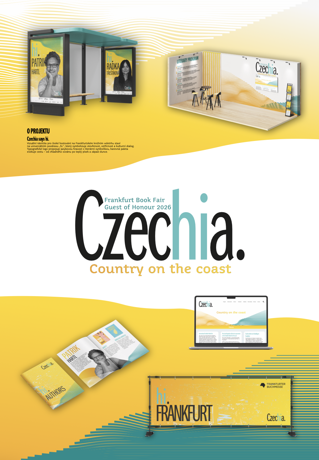 Popis díla: Soutěžní návrh kampaně, značky, vizuálního stylu a merchandisingu českého hostování na Frankfurtském knižním festivalu v roce 2026.